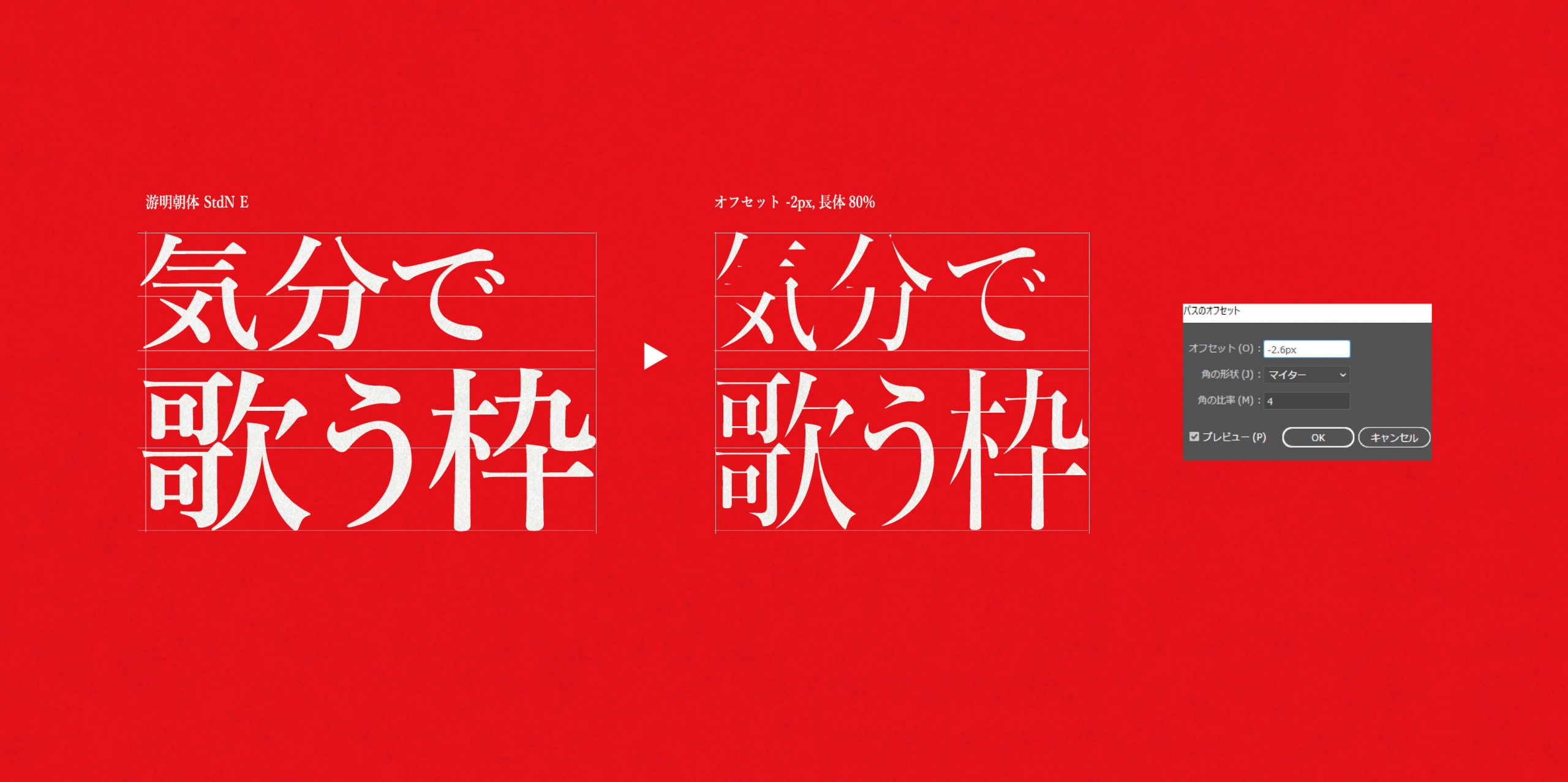 今回のタイトルデザインは、レタリングではなく既存の書体をベースに作成していった。丸みのあるあしらいや柔らかな曲線が美しい「游明朝体」に手を加える形で、美しいウェイトを模索していく。最終的にはパスのオフセットで外周を削るような形のスタイルに落ち着き、現状のデザインに変化していった。