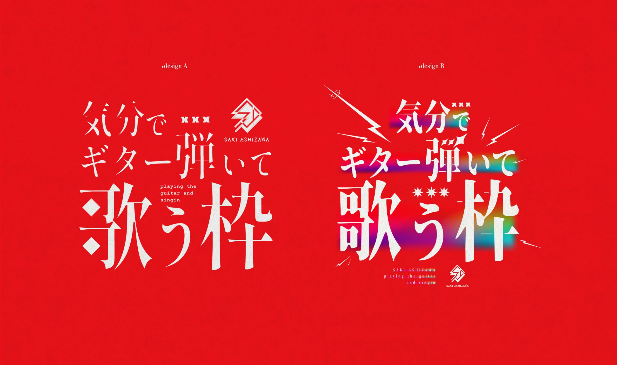 余談ですが、「ギター弾いて」の部分を、完全にエレキギターだと捉えていたのだけど、完成版のイラストが上がってきたときによくよくチェックしてみれば、「アコースティックギター」であった。エレキっぽく電気が走るようなビジュアル展開をしていたのだけど、キャラクター性を表せてはいると感じそのままにすることに。